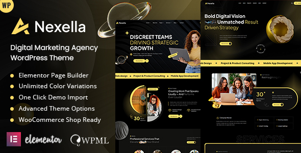 Nexella Digital Marketing Agency WordPress Theme Nexella WordPress Theme for Digital Marketing Agency with predefined web elements which helps you to build your own site. Nexella WordPress Theme is very easy to customize and it has a lot of features and very strong admin panel for any client to make a good website. Nexella also
