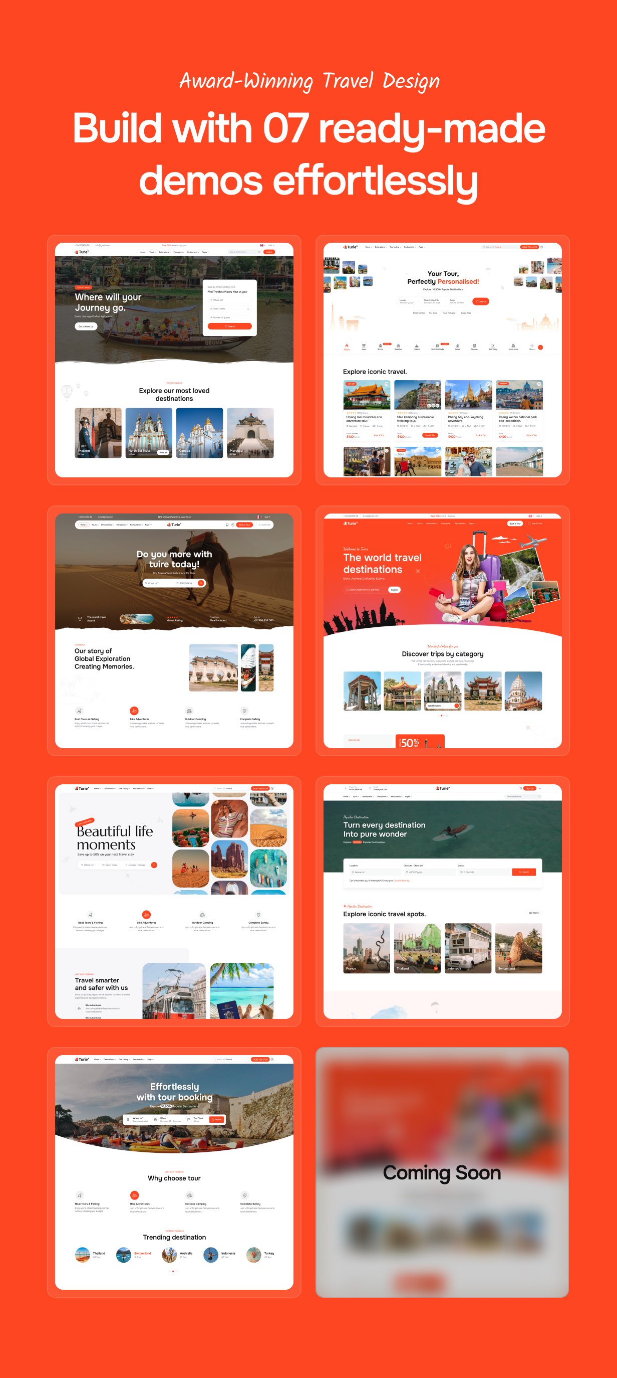 This Travel & Tour Booking HTML Template is perfect for agencies looking to increase bookings, improve brand visibility, and create a memorable digital experience for travelers. Whether you are starting a new travel website or redesigning an existing one, Turie offers a professional and scalable solution for the competitive tourism industry.