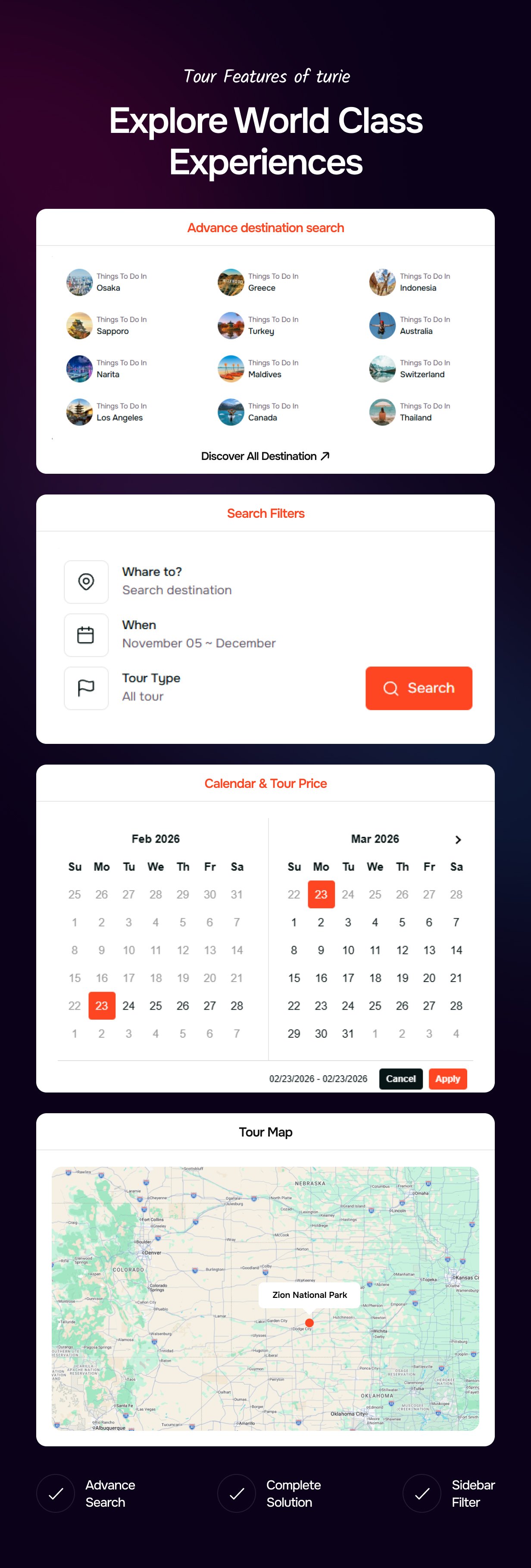 - Complete Travel Features: Includes all essential components required for a tour booking website.